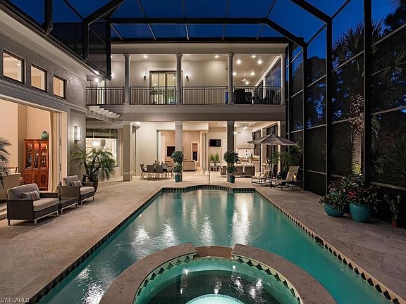 H.11207 - Classically designed, masterfully renovated. This 7100-plus-sq-ft residence exceeds the standards of today's most discerning clientele. A seamless flow has been created w/marble floors inside & out complemented by clean-lined marble & quartz counter-tops throughout. The home's traditional elegance is maintained w/details such as high tray ceilings w/cove lighting & striking crown moldings and a library w/warm wood floor & full-wall custom wood built-ins. Disappearing sliding glass doors lead to a spacious loggia & covered al-fresco dining space where entertaining family & friends pool-side is a delight day or night. A tropical landscape w/accent lighting and abundant plantings provide utmost privacy to make the 17,000-sq-ft lot feel like a lush refuge w/in this Audubon Sanctuary community. Furthering the elevated estate's stature, one will find such high-end amenities as a gas fireplace, walk-in wet bar, outdoor kitchen, pool bath, solar and gas heat for pool & spa, impact windows, LED lighting, and a private elevator to 3 upstairs suites & media room w/wrap-around terrace. Be it for an avid golfer or natural preserve enthusiast, this stunning home brings luxury to life.