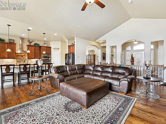 Elegant 5-Bedroom Ranch Home in Flying Horse with Stunning Pikes Peak Views Discover luxury living in this distinctive 5-bedroom, 5-bathroom ranch home with a 3-car garage, ideally situated in the prestigious Flying Horse community. Conveniently located near shopping, the Air Force Academy, and I-25, this home offers both accessibility and sophistication. Step inside to hardwood floors and a chef’s kitchen featuring high-end appliances, granite countertops, and an island perfect for entertaining. The formal dining room provides an elegant setting for gatherings, while the spacious living room, complete with a grand fireplace, opens to a deck showcasing breathtaking Pikes Peak views. The main-level master suite is a private retreat, offering ample space and a luxurious 5-piece bath with a soaking tub. An additional bedroom and full bath complete the main level. Downstairs, the walk-out basement is an entertainer’s dream, featuring a wet bar, a secondary suite, two more bedrooms sharing a Jack-and-Jill bathroom, and a family room with a fireplace. There’s plenty of space for recreation, including a pool table and room for a game table. Step outside to the fenced and landscaped backyard, perfect for relaxing or entertaining. Experience the best of Colorado living in this remarkable Flying Horse home!