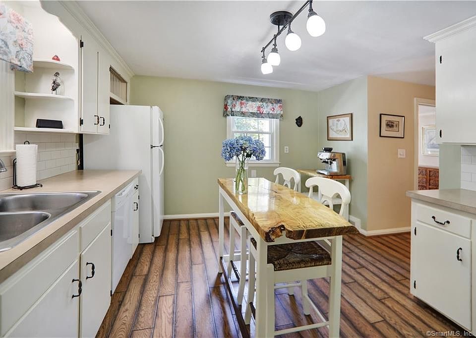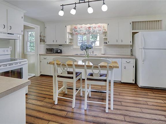 This charming Cape Cod home has many features that are rare to find in West Hartford: attached 2 car garage, large, fenced in back yard, professional landscaping across the entire property, wood burning stove, custom granite mosaic fire pit, shed, 3 bedrooms and 1 and a half bathrooms! Enjoy your own oasis right in your own back yard but with incredible convenience to the best everything West Hartford has to offer! When you first pull into this lovely home, you're surrounded by well kept and attractive landscaping- a colorful POP of flowers is a welcoming sight for you and your guests! Walk in, and you're greeted with a large living room and dining room on either side of you, complete with hardwood floors and tons of natural light! Living room has a wood burning stove, which is perfect to keep cozy by on those chilly New England nights. The kitchen is full of character with wide plank floors and bright white cabinets! Additional room off the living room is perfect for a home office, sitting room, or children's play space. The enclosed porch is a perfect place to relax after a long day at work and enjoy nature without the bother of the elements. 3 spacious bedrooms truly make this home a dream come true! Head to the basement for a quiet spot to relax and read by your fireplace! The backyard is a lovely place to gather and enjoy the summer with tons of shaded area with the surrounding trees. Both bathrooms have been recently renovated. Walking distance to West Hartford Center.