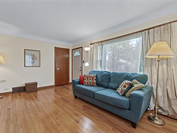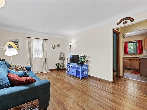 Welcome to this charming story and a half home! Nestled on a quiet and conveniently-located street, it is ideal inside and out! The main floor features beautiful hardwood flooring, a light and bright living room with a large picture window, an updated eat-in kitchen with stainless steel appliances, a newly renovated bathroom with wainscoting, and two bedrooms. Upstairs is a spacious 3rd bedroom with a walk-in closet and built-ins. The lower level offers a rec room and 4th non-conforming bedroom/office. With over 1,600 finished square feet, the floor plan is efficient and makes the most of its space. Plus, it doesn’t end there - the outside is just as lovely! The yard is lush with many perennials and mature trees, and the flat backyard is fenced-in. The exterior features vinyl siding, shutters, new exterior lights, and plenty of storage space in the 1-car garage and shed. This home is a gem - make it yours today!