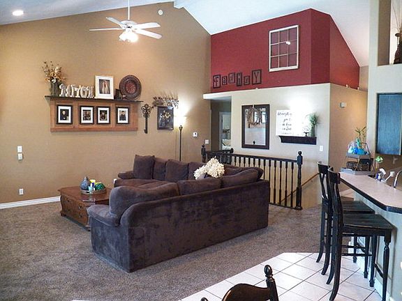 Awesome Floor Plan and Great Curb Appeal which Continues on through this 5 Bedroom, 3 Bathroom Home! You will be impressed by the soaring ceilings and the inviting great room with cozy gas fireplace-perfect for family gatherings and entertaining! Large kitchen overlooks the family room and dining area with french doors to the private east facing covered patio. To your left of the tiled grand entry is a formal dining or office area with beautiful hardwood floors which flows nicely to the large kitchen which has tons of custom distressed cabinets and includes all appliances. Master bedroom has oversized master bathroom with jet tub, walk-in shower, large vanity with double sinks and walk-in closet. Basement features large family room with free-standing gas stove, two more oversized bedrooms with walk-in closets, full bathroom and two storage rooms! Two water heaters, tons of storage, fully fenced backyard, full auto-sprinkler system, bully barn and great landscaping make this a great home for the price!! Great Neighborhood, Great Home, Great Price!! Come take a look!