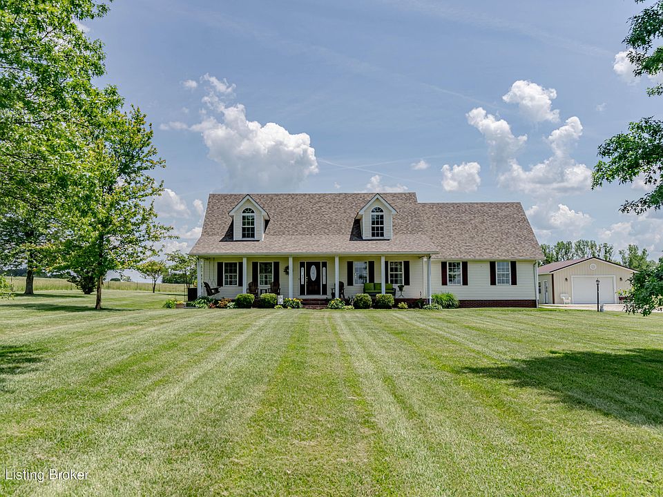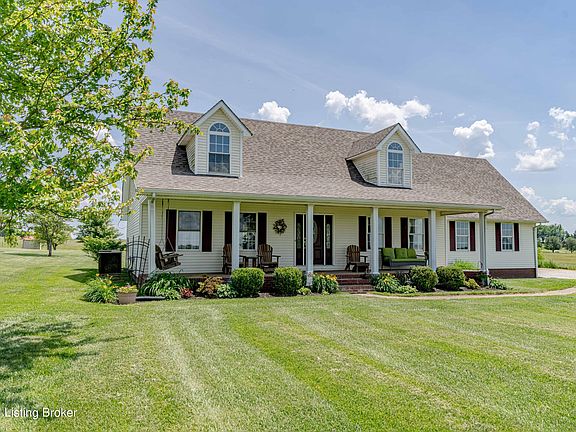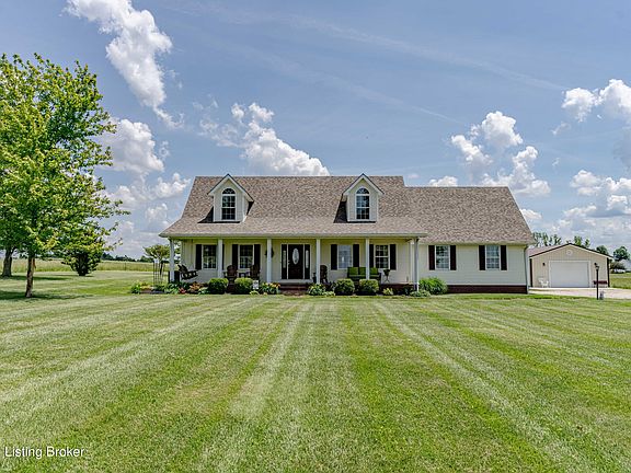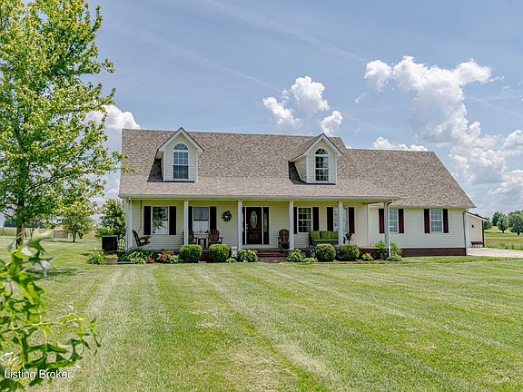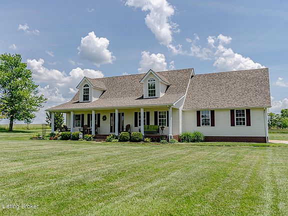 Don't miss out on this beautiful Cape Cod on 2 Acres with the most beautiful country views you have seen in a while! Whether you choose to sit on the front porch for morning coffee or the back porch for evening entertaining, the open country views that surround you are breath taking! Let your kids and pets run free in the open spacious big yard! This home has all the country characteristics while only being 5 miles from Leitchfield, and 25 miles from Elizabethtown. The pride of ownership shows as you enter this 2100+ sqft home. On the main level, solid hardwood floors are throughout, the primary bedroom and living room. Tile flooring is in the kitchen and laundry that is right off the attached 2 car garage. With a large spacious kitchen that has plenty of counter and cabinet space, cooking for a large family is can be done with ease! The open windows provide lots of natural light and a view of the large open fields. Also located on the main level is a half bath, perfect for guests. Walk up the beautiful hardwood steps to the other 2 or possibly 3 bedrooms and full bath. Updated hardwood flooring upstairs, and large bedrooms are compliments that the home offers. A new roof was put on in 2023. Outside, there is also a 24X32 detached garage that is insulated and has electric, perfect for utility vehicles or a shop! This is one you have to see for yourself to appreciate what the property has to offer! You will feel at home once you pull into the driveway! Call today to schedule a showing!