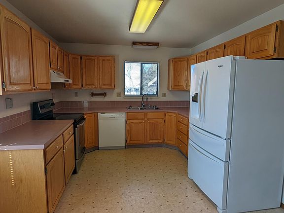 This is a very large 3+ bedroom home with 3 full bathrooms and a 2 car garage. This home has new vinyl flooring in the living room and dining area. The main floor has 2 large bedrooms and each room has it's own bathroom. In the basement there is an additional living room, two more bedrooms and a utility room. One of the basement bedrooms has a closet and egress window but the other does not. Tenant pays utilities