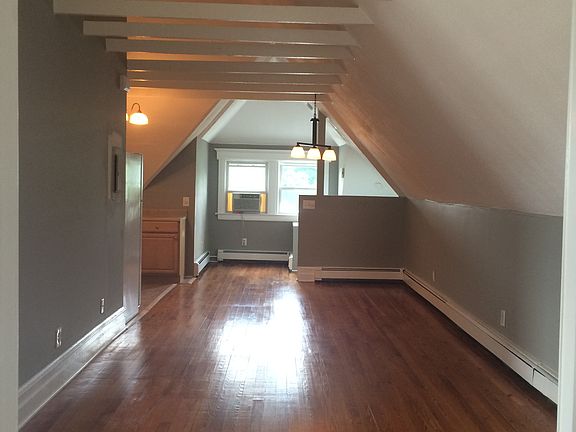 Hardwood and tile floors throughout. Hardwoods are newly refinished. All kitchen appliances are new. 1bedroom/1 bath. Large bedroom with very large closet. New windows. Open concept. Room to set up a dining room and living room. High, lofty ceilings. Nook area.. could be used as an office space. Washer and dryer in basement. 1 parking spot in the driveway. Water paid by landlord. Tenant is responsible for utilities.