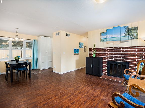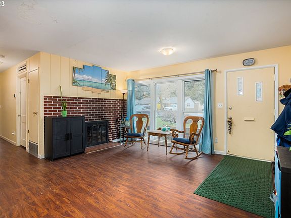 This ranch home features a flexible floorplan with two living rooms and large bedrooms. Step out from the fully appointed kitchen to entertain under the covered patio, or relax inside in front of the wood burning fireplace. The huge primary bedroom has laundry and direct access to the backyard. Additional 195 SF is a beautifully finished detached studio, perfect as an office or quiet getaway. House has newer windows, fence, and heat pump. Just waiting for your cosmetic touches. [Home Energy Score = 6. HES Report at https://rpt.greenbuildingregistry.com/hes/OR10212781]