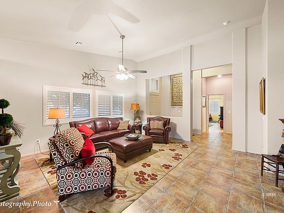 Located in the popular gated community of Sunset Greens, this 1612 square foot townhome features two large bedroom suites, large great room, ample storage, and a covered patio off the kitchen/dining area. Tile floors and wood shutters. Corner lot for extra parking. Noted for its lush, mature landscaping, well-maintained common areas and two swimming pools, Sunset Greens living offers residents a beautiful oasis convenient to all Mesquite has to offer. Residents also receive discounts at the Casablanca Resort and Golf Course, which borders the community.