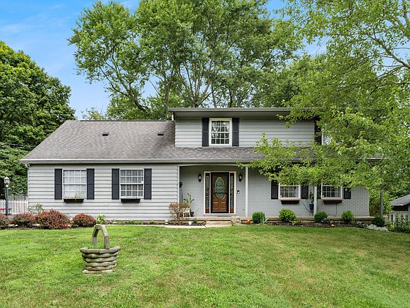 Situated on a private 0.69acre lot with a large fenced-in back yard. Beautiful hardwood floors throughout most of the home. Dining room and living room open to each other with a bay window that overlooks the back yard. Cozy family room with wood burning fireplace and insert with blower. Beautiful kitchen with new granite countertops, new stainless dishwasher and refrigerator, a large eat-in space and pantry. Spacious primary bedroom with large walk-in closet, and updated primary bathroom, two/three additional bedrooms (or two bedrooms plus a bonus room), updated second full bath. Whole house fan. Finished area in the lower level plus additional storage space. Newer furnace and AC, newer 200-amp electric panel. New 16'x20' storage building. Side load garage. Convenient location with easy access to highways and Columbus. A must see! Move-in ready!