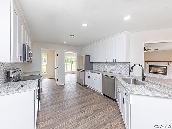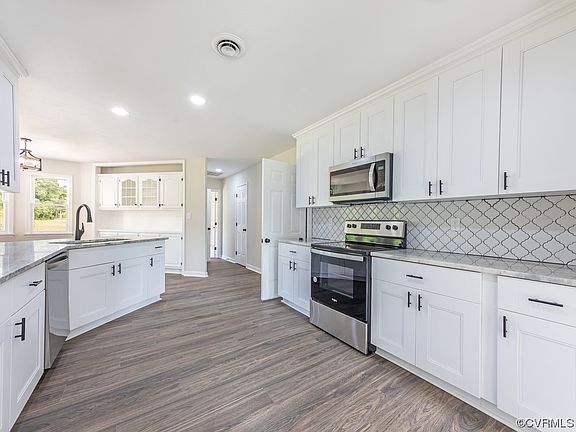 Welcome Home! 1246 Regent Rd. is situated on over 4 acres of land providing a peaceful country setting. Updated throughout, upon entering the front door you’re met with an expansive, natural light-filled living room. New carpet and new luxury vinyl plank span through the entire home. The kitchen has been fully upgraded with soft-close cabinets, new appliances, granite countertops, tile backsplash, and custom lighting. Built-in cabinetry flows through the dining room and into the family room providing extra storage space. Two full bathrooms have also been fully updated with new vanities, light fixtures, and custom tile work. The primary bedroom en-suite features its own private access to the partially covered rear deck. Rappahannock River public boat ramps, beaches, and horse stables are nearby allowing you to take full advantage of enjoying the country.