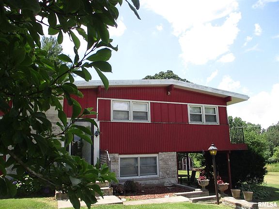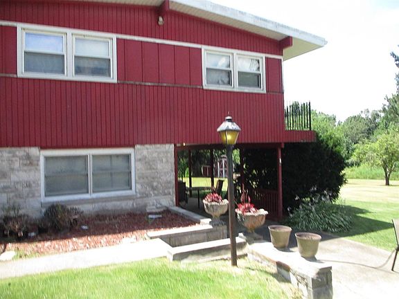 This 1960's Retro county home on 15 acres of both woods and open space is located perfectly, near Rt 57 yet set back off the beaten path. There are two additional uninhabitable houses on the property and a large pole barn. Inside, the step down living room with a beautiful fireplace is spacious and perfect for family living. The formal dining room is ample space for a large dining table and much more. The eat-in kitchen has lots of cabinetry and counter space for the person who loves to cook. The sunroom on the back of the house has a beautiful view of mother nature overlooking a wooded area. The master suite and two other bedrooms plus a bonus room will accommodate a large family. Did I say retro? Outdoors off the master and bedroom 1 are doors onto a deck with a spiral staircase to the ground. From the lime stone fireplace to the roofline, this house is retro.