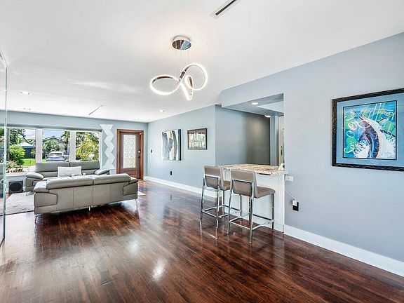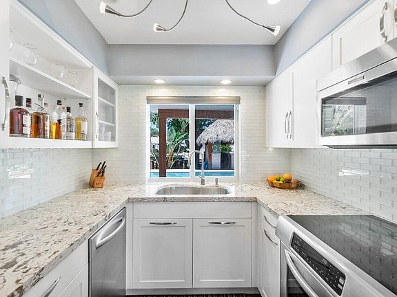 Enjoy indoor/outdoor living at its finest! A custom-designed tropical outdoor sanctuary focused on the waterfront vistas is the focal point of this home. A spacious newly refinished salt water pool, custom composite dock, tranquil Koi pond, and large tiki hut with full summer kitchen and bar/kegerator make for the perfect spot to relax after a day on the waterway. This updated home is as impressive inside as the custom backyard oasis. An open concept living room flows directly to the light-filled dining space. The kitchen features smart appliances that can be operated through a phone and a convenient eat-in peninsula. The two bedrooms are designed in a split-floor plan to offer maximum privacy for all. In the primary suite, an ensuite bathroom with modern finishes awaits. The second 2021-09-30