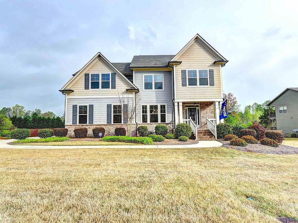 Hard to find, breathtaking 6 bedrooms, 2 kitchens, 1 1/2 acre fenced back yard! In-law suite. Open floor plan. Both kitchens, stainless steel appliances, granite counter tops, upgraded cabinets, backsplash. Main kitchen, huge island views the family room, stacked stone fireplace, awesome views of the fenced yard. Upstairs has a Media room, trey ceiling, that's huge. Dining room, coffered ceiling & designed wainscoting. Basement: hardwood floors, den, kitchen, bedroom, bath, exercise room/office. Deck has been extended along with under the deck finished for a usable patio.