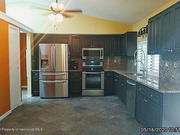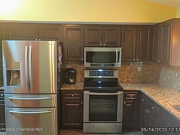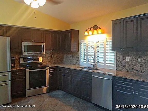 Awesome well cared for 3 bedroom 2 bathroom salt chorinated pool Home in Seven Hills, near the YMCA! Over $30,000 of brick paver work front and back including a beautiful custom stacked stone patio with fire pit and landscape island. Over $10,000 of granite installed inside kitchen and baths and outside on the custom summer kitchen with Jenn-Air stainless propane grill, outdoor refrigerator, full size sink and TV as well! Crown molding throughout, commercial grade porcelain tile throughout except one bedroom which has brand new carpet. Third bedroom was used as an office and has a custom dry bar with wine refrigerator and storage. Both bathrooms showers remodeled. New GAF Timberline roof July 2016. Stainless steel appliance package, newer pool heater and pool pump motor. Huge screened lanai and pool area. Fully functional irrigation system with micro heads in the landscape area. Two car garage, flooring professionally epoxy coated. Inside laundry room with deep sink and so much more! Call today before it's SOLD! Foundation stabilization completed and is fully insurable and warrantied! One year Home Warranty Included!