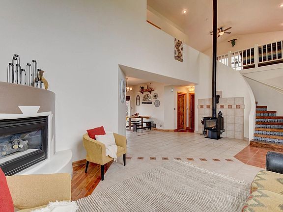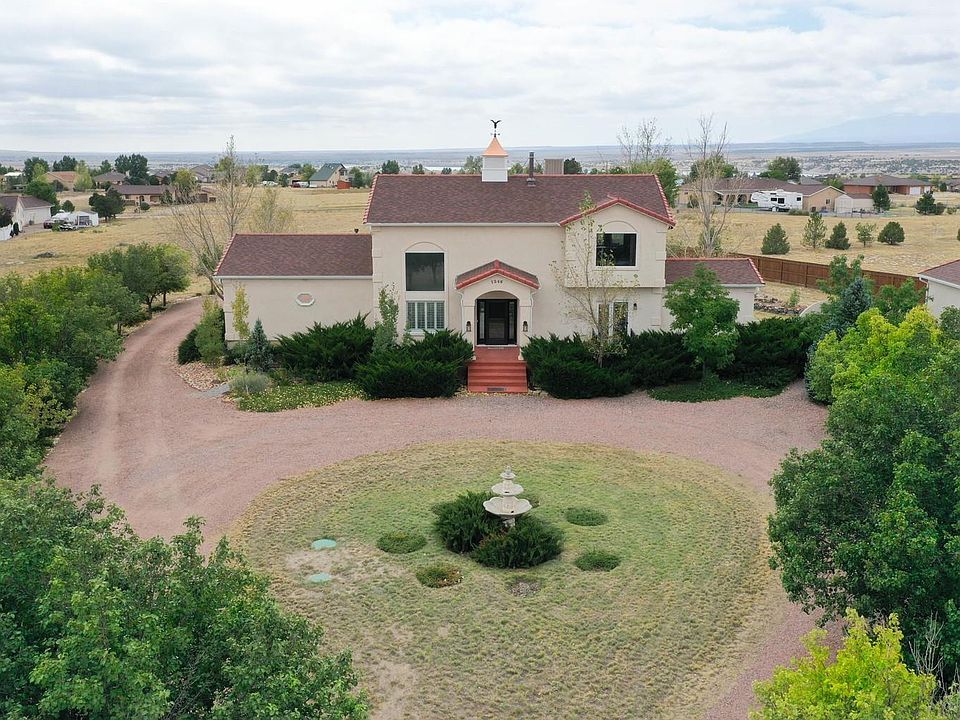 Immaculate, updated two story stucco home on an impressive 1.25 acres. The property is landscaped with many trees, flagstone pavers, 2 pergolas, and koi pond. Spectacular views of Big Horn, Pikes Peak, Spanish Peaks and only 3.5 miles from the Pueblo Reservoir. Tree-lined circular gravel driveway, the private decks and patios, the colossal detached garage. This detailed-rich home boasts lots of natural light, high ceilings, tile and wooden floors with tile accents scattered throughout. The living room has a beautiful gas fireplace for ambiance and a new wood-burning stove for the cold nights. There is a separate dining room adjacent to the fully updated kitchen with newer stainless steel appliances, butcher block counter tops, and knotty alder wood cabinets. The master suite is located on the main level with a fully updated master bathroom to include a new shower, new copper sprayed claw foot tub, new vanity and sink and wall to floor tile and beetle kill pine for lots of character.