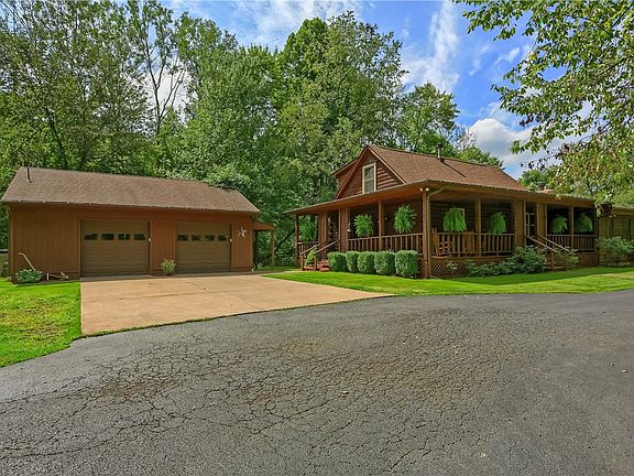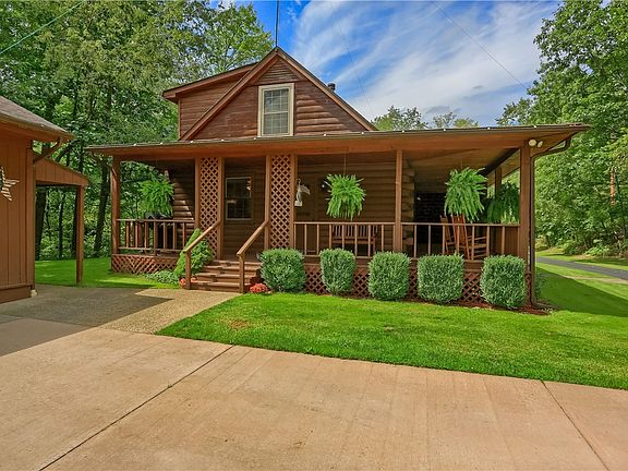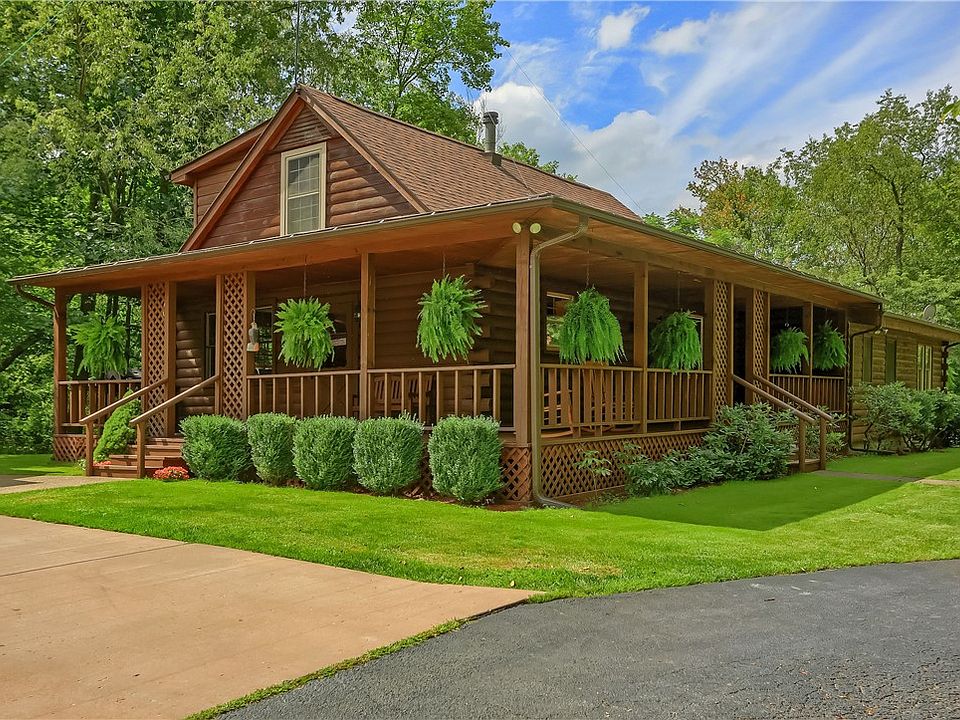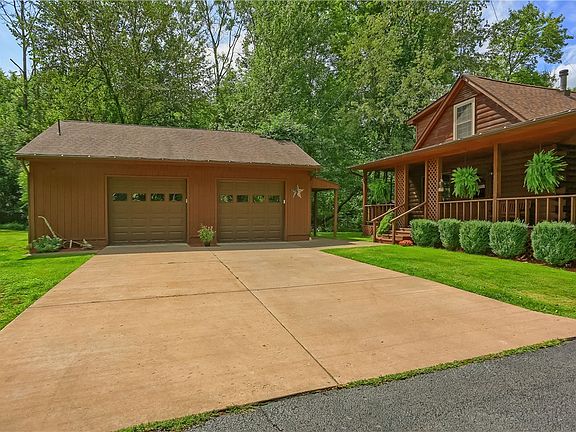 Pristine & UPDATED 1.5 story LOG HOME features 4 beds/2.5 baths/covered front & side porches & XL 2 car garage w/man door, heat & H2O. REAL LOG HOUSE is constructed w/ D-logs, natural stone & nestled on 14 acres of woodlands minutes to Moraine, Zelie & Cranberry. Property sports large flat yard + play set. Enjoy fishing in your own pond or jump on the quad/grab your bow & head off into the woodlands trails for adventure. MAIN FLR: Kitchen w granite counter & island, SS appliances, pantry & dining for 8. Half Bath; MASTER Bed w/ DBL Closet; Bed2: FULL BATH1; Vaulted XL Family Rm w/wood FP opening to covered side porch. 2ND STORY: Private Beds3 & 4. FULL BATH2. Walk-Up UNFIN LL w/tall ceiling, wood stove, Laundry CTR w/ utility sink & storage shelves. UPDATES: 2024: (2) New AC heat pumps & new furnace. 2023: Well & septic serviced/; new hot water tank; exterior stained. 2022 Carpeting. 2021: Interior painted. 2020: New roof. 2019: 2nd story & Master windows. 2015: Entry Doors