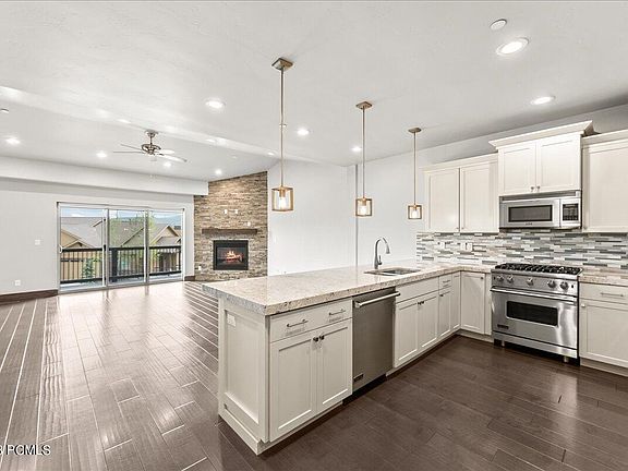 Introducing a meticulously designed Sunfire floor plan, four-bedroom, three-bathroom residence that embodies comfort, functionality, and style. This exceptional home offers an ideal floor plan, ensuring ample space for relaxation, entertainment, and everyday living. The open concept living area seamlessly integrates the kitchen, dining, and family rooms, creating a central hub for gatherings and quality time with loved ones. The mountain views become an integral part of your daily life, creating a serene and tranquil ambiance. The well-appointed kitchen is a chef's delight, featuring modern Viking appliances, generous storage and extra thick granite countertops. The main level master suite offers a peaceful sanctuary for relaxation. The attached master bathroom boasts a soaking tub, walk-in shower, and double vanity allowing you to indulge in a spa-like experience. The garage has epoxy flooring adding a touch of sophistication while providing easy maintenance. In addition to the luxurious features, this end unit townhouse offers a large outdoor open space in the back creating additional room to entertain guests and take in the fresh mountain air. Black Rock Ridge allows you to embrace an active and fulfilling lifestyle right at your doorstep. Conveniently located minutes to Jordanelle Reservoir, Park City Mountain Resort, and Deer Valley, this townhouse offers the perfect balance between serene mountain living and urban convenience. Owners can opt-into more amenities at the Black Rock Mountain Resort for an additional fee. Those amenities include a heated outdoor pool, hot tubs, spa, steam room, sauna, fitness center, and a restaurant. Don't miss the opportunity to own this remarkable end unit townhouse with exceptional mountain views, wood floors, epoxy garage, and Viking appliances. It's time to elevate your living experience. Schedule a private showing today and prepare to be inspired by the beauty that awaits you!
