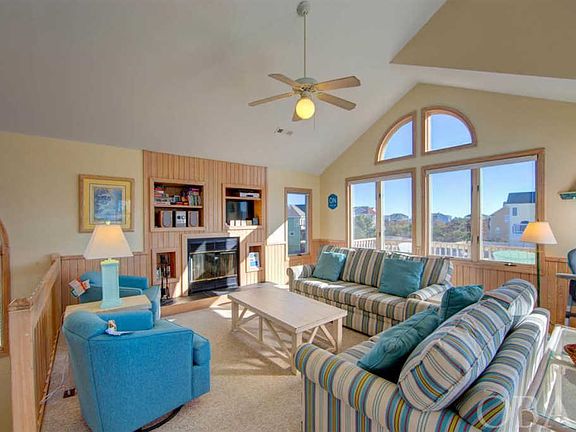 Super nice, well maintained home located in the popular Villages at Ocean Hill. Tastefully furnished and decorated, this bright & airy Oceanside home is in excellent condition and has been well maintained by caring owners. Nice open floor plan including 5 bedrooms (3 masters), 4 full baths, generous great room area, easy flow kitchen, ships watch, screened porch, game room, spacious sun decks, Hot tub and fireplace. Recent upgrades include replaced top sun decks, new flooring in kitchen & bath areas, new furnishings in great room, dining room & game room, new washer & dryer, removal of popcorn ceiling in great room , dining room & ships watch areas. Super location, slight ocean views, great views of lighthouse and easy walk to wide beautiful beaches. Relax and enjoy 2 community pools (Oceanfront & Sound-side), tennis courts, playground & fitness center. Convenient to area shops, restaurants local attractions and 4 x 4 area. Great lot, almost 14,00 sq. ft. , high & dry, No Flood Insurance Required! Plenty of room for a pool! This is a nice home, come take a look! You will be glad that you did.