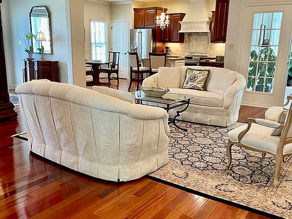 Beautiful Greek Revival home w/lovely front porch overlooking the park on desirable Burke Dr. Large trees in the park add to the beauty of the view. Main floor master & 2nd BR (split) on 1st floor each with their own bath along with 2 BR's & bath upstairs. Main floor also has fireplace in Great Rm. Shonbek Chandeliers in Great Rm & Kit. large Sunroom & Library. Brazilian cherry hardwood floors throughout.Patio is fenced & landscaped for privacy & has a fountain that adds ambience. Garage has coated floor and extra space for storage.