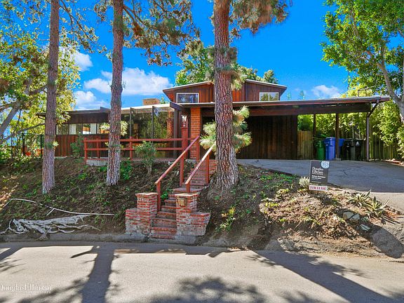 A flowing, wood and glass contemporary, Brentwood hills home with 4 bedrooms, 3 baths in Crestwood Hills neighborhood. Located on a large corner lot with pool and spa and beautiful canyon views. Walking distance to Kenter Canyon school and Crestwood Hills park. This serene and private setting is great for family entertaining. Main floor has junior master with en suite bath and 2 additional large bedrooms. Upstairs you will find an expansive master bedroom retreat with a large walk in closet, including large master bath with double sinks and its own private deck with spectacular canyon views. Appliances included. Available for immediate occupancy.