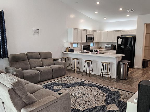 Step inside to find a welcoming interior that gives you vaulted ceilings, a large living/dining room and a very functional, open concept floor plan with plenty of natural light flowing throughout. Elegant kitchen with a gas range and all the essential appliances, including the washer & dryer. The master bedroom has a large walk-in shower, double sinks, oversized closet and an access door to the patio, backing onto a common area with view fencing and privacy. Located in a desirable neighborhood, this home is just minutes away from Loop 101, 303, Luke AFB & State Farm Stadium. Don't miss out on this Amazing Home.