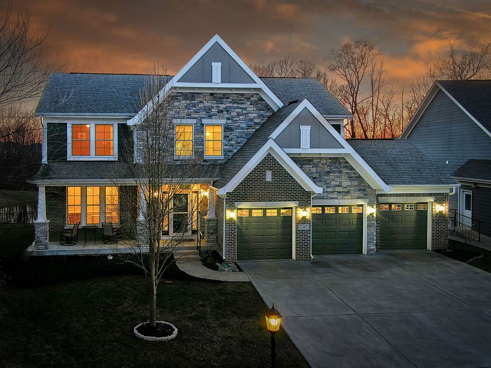 Most spectacular homesite in Thorpe Creek! Welcome home to this highly sought after floorplan featuring the Primary suite on the main, 4 bedrooms, 4.5 bths, 3 car garage, nestled on a quiet cul-de-sac! Seamless flow of hardwds into grtrm w/towering clngs w/a stunning flr2clng stone frplc! Ktch w/tons of white cbnts, brkft bar, SS applc, all drenched in natural light! Hm office tucked off foyer w/blt-ins & crown molding. Mudroom w/cubbies & laundry w/cabinets for storage. Upstairs: Loft w/2 add bdrms each connect to private bth! Bsmt ftrs wet bar/billiard area/rec room/bedroom/full bath. Fully fenced backyard w/2 levels of entertaining space, that's a private oasis, woods & a pond w/views for days of nature! Nhood Pool/Park/BB Court/Plygrnd!