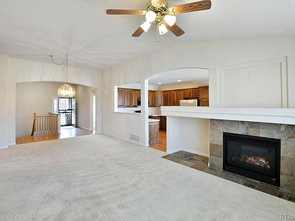 Light and bright ranch style home perfectly located on a greenbelt with loads of open space and very near to the neighborhood's park. Open floor plan with vaulted ceilings. Hardwood floors in entry. Spacious living room with fireplace, ceiling fan and vaulted ceilings. Large kitchen with dining area, stainless steel appliances and lots of counters and cabinet space. Master bedroom has vaulted ceiling, walk-in closet and 5 piece master bath. Secondary bedroom has high ceilings. Main floor laundry room. Unfinished basement ready to be finished the way you want it. Deck in backyard looks out to open space.