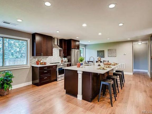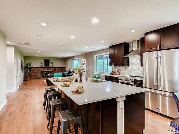 This sun-filled remodeled brick ranch has 5 bedrooms, 3 baths and features an open floor plan. Kitchen has been completely redesigned with all new Kitchenaid stainless steel appliances and a ceramic smooth-top stove, new disposal, quartz countertops and new shaker cabinets. The expansive quartz topped kitchen island features additional cabinetry as a bonus. The home also boasts new wood laminate flooring throughout kitchen & living area and new carpet in bedrooms, new water heater, new furnace, new A/C, new windows and a wood stove/fireplace in the family room. Bathrooms are tastefully remodeled with contemporary ceramic tile, new fixtures, and cabinets. The basement features additional bedrooms and bath plus a wet bar. A covered patio and barefoot ready lawn add to privacy and comfort. The location is convenient for access to downtown on Alameda Ave or the airport via I 225. Seller welcomes buyers interested in quick possession.