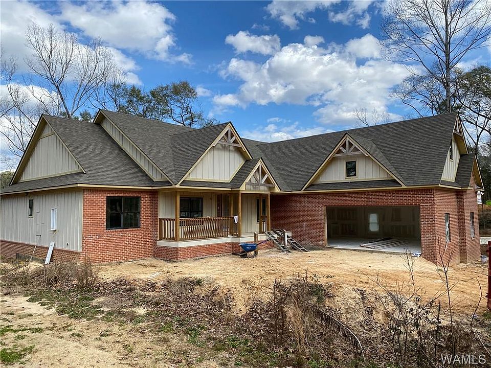 Still under construction, with a high level of design still to come, this Lake Tuscaloosa waterfront home can be your new luxury dream. Featuring charming front and back porches, vaulted tongue and groove ceilings, stunning kitchen with 8 ft island, farmhouse sink, gas cooktop, and ample natural light to stunning lake views. The primary suite will be as if you are relaxing in your own spa. The en suite bathroom offers you an impressive walk thru shower with dual shower heads and waterfall feature, as well as your own luxurious stand-alone soaking tub. Price reflects unfinished walk-out basement with safe-room. Builder is willing to discuss the addt'l cost to complete basement with prospective buyers.