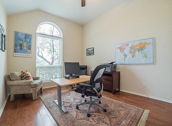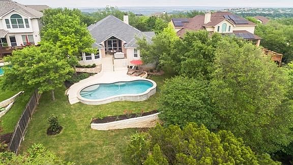 Located at a quiet cul-de-sac with Hill Country views and lots of natural light. Upgrades are plenty in this three bedroom -- plus office -- home with an open floor plan, vaulted ceilings, and hardwood flooring throughout. Relax in the pool surrounded by your newly landscaped yard that backs to greenbelt. This highly desirable neighborhood includes award winning LTISD Lake Pointe Elementary school, parks, clubhouse, neighborhood pool, Lake Austin access, and an abundance of hiking trails.