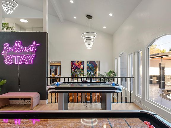 For those who crave entertainment, a remarkable game room awaits, complete with ice hockey and shuffleboard, perfect for avid game enthusiasts. Additionally, the property features a lavish pool area that exudes the ambiance of a high-end boutique hotel, recently reimagined to offer the ultimate California sun-soaked escape.