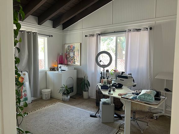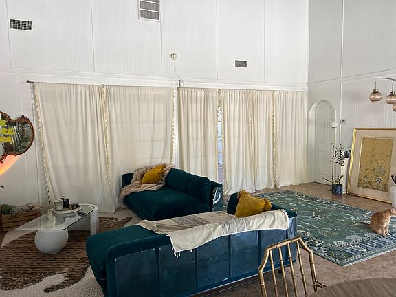 Incredibly spacious 2 living room, 2 bathroom, 4 bedroom (technically 3 bedroom and one office, as there is not a closet in what you see as the office space in the photos, but you could certainly add an armoire to serve as one.) HUGE kitchen, large 2 car garage with ample additional parking, and 2 large outdoor kennels for pets. Landlord is open to farm animals as well and is very accommodating/easy to work with. I unfortunately have to end my lease early due to my career in Los Angeles and am very saddened by this, as this space is pure magic and total peace. Also have a security gate. On 5 acres with hiking in the back yard. This property would be great to host smaller retreats. The furniture in the secondary living room (pictured) is included (sofa, night stands, rug, dining table, chairs, bookcase and not pictured: office desk.) the two queen beds are available as well if you'd like them. The furniture in the second king bedroom (pictured, platform bed, two paintings left of bed etc.) is also negotiable. 1 year