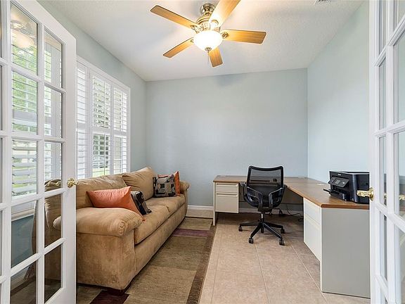 Beautiful Granville 2/2 + Office & Golf Cart Garage located on a quiet cul-de-sac with a park-like setting. This home is SWEET! Brand new architectural shingled roof with $18k of solar panels (Duke Energy bill $9.99/mo), Rinnai tankless water heater, brand new HVAC system, interior freshly painted, designer drive, walkway, porch and rear porch have been freshly painted. This home has it all! Lovely transition tile on both entrances to the huge, eat-in kitchen with granite counter tops, breakfast bar and center island. Kitchen also has SS appliances. The library has plantation shutters and two (2) built-in bookcases and french doors to boot! The Living area (Great Room) has a gorgeous built-in entertainment wall that includes a gas fireplace for those chilly evenings and custom-made wooden cornices over the two (2) sets of sliding doors. The master bedroom is huge with double entry doors to the en suite with a garden tub, separate shower and water closet. There is also a large walk in closet. The home has two (2) solar tubes. The laundry room has added shelving for hanging clothing to dry or for your coats and jackets and comes with Maytag appliances. The enclosed lanai is wide open (40 x 10) to arrange your TV area or extra entertainment area any way you want. There are solar shades on all windows and beautiful gardens to view. There is a large, designer painted back patio as well. Oh - did I mention the double front doors with oval shapped beveled glass inserts and Hide-A-Way screens OR that this home has been totally repiped - ceilings and walls...? Call quick for an appointment! This one is ready for its new owners!