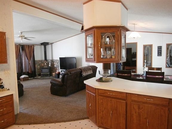 Very nice manufactured home with 4 bedrooms plus family room, 2-car detached garage plus storage shed. 4.71 acres with some sub-irrigated pasture plus irrigation ditches for stock water.
