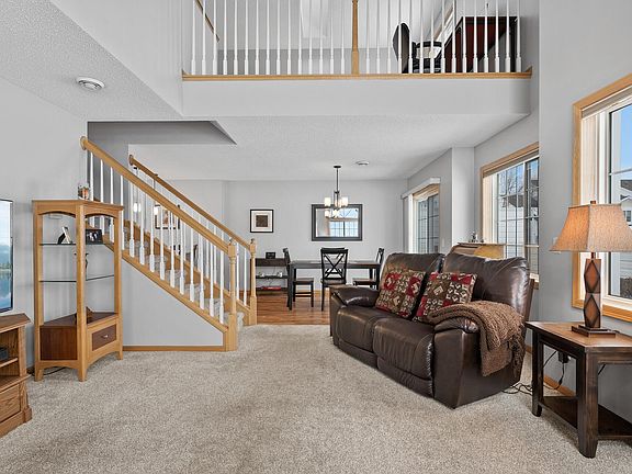 and pendant light fixtures above breakfast bar area. Upper level features a huge loft area as well as two bedrooms with large closets.