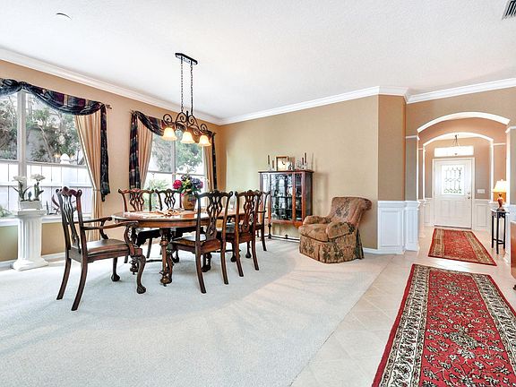 If you can pull yourself away from the covered front porch with a sweeping view of Lake Sawyer and the beautifully landscaped lawn, you will be impressed with this model like home that features upgraded wainscot paneling, crown moulding, lots and lots of windows and inviting architectural arches that lead you through an open and spacious floor plan. From the living/dining combination that the current owner uses as EXTRA LARGE formal dining room with a seating area, to the open kitchen and family room to the AMAZING lanai and pool, this home is ideal for entertaining or for your own private oasis. The pool and spa are solar heated and there is also a propane gas heater. LUSH land/pool scaping, screen enclosure, a covered eating/outdoor living area and gorgeous sealed pavers make this a private haven in your own backyard. The redesigned kitchen features 42" cabinets with moulding and under lighting, a gigantic bar area, and efficient layout. The Master bedroom provides luxury with jetted tub, large walk in closet and French doors that lead to the sunroom overlooking the pool. The community offers a fishing dock within walking distance, playground, tennis courts, community pool with rec house, sports court, volleyball and sidewalks throughout. Lakes of Windermere offers sought after location near theme parks, highways, restaurants and premium shopping. This impeccable home and ideal location offers unparalleled quality of life!