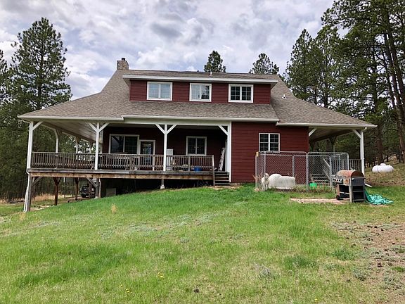 BEAUTIFUL HOME IN A BEAUTIFUL SETTING! This custom built, owner designed home, is just a few minutes out of Custer and has USFS on one side. 3 bedroom/ 2.5 bath on 10+ acres. COVERED PORCH all the way around leaves you with a beautiful place to sit at any time of day! Great views. Cathedral ceilings in living room and Master bedroom. Wood fireplace in living room with rock hearth from floor to ceiling. Gas fireplace in Master. Bright dining area open to kitchen and living room. Kitchen has high end cupboards, countertops, wonderful island, and pantry closet. Laundry room with nice cupboards and laundry sink off huge master bath with outdoor access to covered porches. Two carports and a nice shed. Low maintenance exterior. Full unfinished walkout basement. Some walls studded in. Great location! Come take a look.