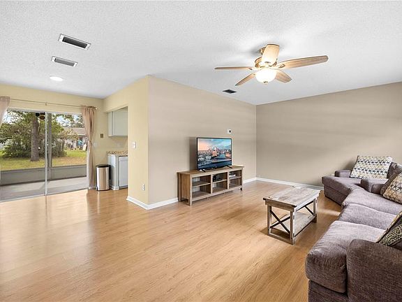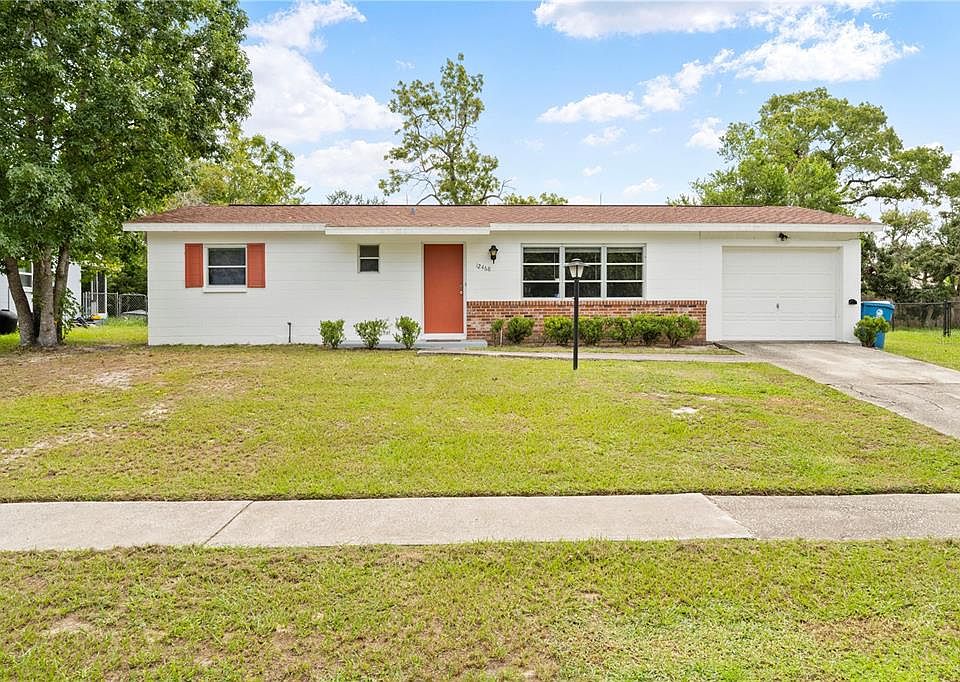 Welcome to 12468 Eddington Road, your PEACEFUL FLORIDA RETREAT! This inviting 2-BEDROOM, 1.5-BATH home with an ATTACHED 1-CAR GARAGE combines thoughtful updates with everyday comfort. Set in a quiet neighborhood with NO NEIGHBORS DIRECTLY ACROSS THE STREET, it offers a tranquil backdrop for full-time living or seasonal getaways. Step inside to a cozy living room perfect for relaxing after a long day, with a charming dining nook just off the kitchen — ideal for morning coffee or casual meals. The home comes complete with all appliances, so you can move right in and start enjoying it immediately. Both BATHROOMS HAVE BEEN BEAUTIFULLY REMODELED, with the full bath featuring a stylish tiled shower. The primary bedroom boasts its own half bath plus a generously sized WALK-IN CLOSET, providing plenty of space and privacy. Updates like NEW FLOORING, a NEWER WATER HEATER (2022), and a 2020 ROOF mean many big-ticket items are already taken care of. A sliding door opens to the SCREENED LANAI AND COVERED BACK PATIO, extending your living space outdoors. Whether you’re entertaining friends or soaking up the Florida sunshine, this home makes it easy to enjoy indoor-outdoor living year-round. PERFECT FOR A FIRST-TIME HOME BUYER or a SNOWBIRD seeking a humble RETREAT for the winter, 12468 Eddington Road blends charm, updates, and peace of mind. Homes like this don’t stay on the market long — schedule your showing today and discover your next chapter!