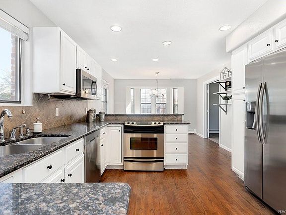 Welcome to this turn-key home with brand new roof in a great golf community! Filled with natural light and neutral tones. Main level formal spacious living room with glass French doors flows into the dining room and gourmet kitchen with expansive granite countertops, white cabinetry galore, updated stainless appliances and a charming eat-in nook with a built-in window seat bench. A spiral staircase off the family room leads upstairs to a spacious bonus room or teen retreat. Three additional upstairs bedrooms, including the master retreat with en-suite bath and large walk-in closet. A fully finished basement has a rec room with built-in wet bar and a theater room with varying floor levels providing optimal movie viewing. Lovely fenced-in backyard space with mature trees, a large covered patio, and a spectacular tree-house playset. Walk to Aurora Hills Golf Course and very quick proximity to I-225. 12 month home warranty included and immediate occupancy in the public remarks section.