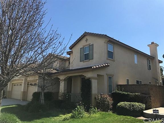 Spacious six bedroom, 4.5 bathroom home in Eastvale. With new paint and new carpet, it is in move in condition. The downstairs features a large entry with a formal living room and formal dining room and staircase to the second floor. The centerpiece of the home is the large kitchen that flows into the family room with fireplace. Recess lighting, plenty of windows for natural light and large glass door leading to backyard area. The kitchen features a built in table and seating, double oven, gas cooktop, microwave and dishwasher. There is also a separate island area for food preparation and bar stool area for entertaining. Plenty of cabinets and walk in pantry area in kitchen. There are 2 bedrooms, 1 full bathroom and 1 half bathroom downstairs. The interior laundry room is off of the hallway leading to garage with plenty of cabinet space and large sink. The upstairs contains a huge master suite, retreat, 2 walk in closets, large bathroom with separate sinks, tub and shower. The upstairs hallway leads to the other 3 bedrooms. One bedroom has it's own shower and bath connected. The other 2 bedrooms are jack and jill style with a large bathroom in between. Fully landscaped front and backyard. Large 3 car attached garage with plenty of driveway parking. This home sits in a cul-de-sac.