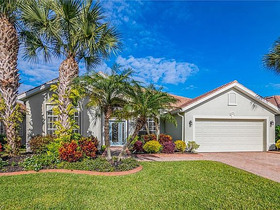 A true move in ready home! many upgrades for you to enjoy! Gorgeous Glass Front Door letting in plenty of natural light, New Microwave, Newer Dishwasher, Plantation Shutters, Custom under/over Kitchen Cabinet Lighting, Prof. Landscaped with evening Up Lighting. Kitchen open to the family room best of all they won't see you cooking when walking thru the front door! Kitchen also boasts 2 pantries, quartz counter top, 42" cabinets with crown molding & SS appliances. Large master has walk in closet with built ins. Extended lanai with plenty of room to lounge, dine & entertain. Tile floor/grout has been prof. cleaned & sealed, roof & house just power washed. Exterior prof. painted 2017. Lanai screens replaced 2019, 2 New Polyurathane see-through Hurricane Shutters, Accordian Shutters in the front of the house & lanai for ease & convenience. Comcast Xfinity cable & internet incl. in HOA! Lifestyle living - tennis, pickleball, sand volleyball, large community pool & spa, fitness, & many more amenities, biking & walking path through park-like, active community. Gateway offers restaurants, dog park, golf & country club, pub, stores & more. Min to airport, Red Sox stadium, shopping & I-75