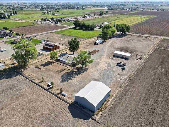 Horse property with 360 degree views! This home offers beautiful oak cabinets, hardwood floors, new carpet and two spacious living areas. The property consists of a 2000 square foot shop that has central air and heating with room for optional living space and is roughed in for a bathroom. Run in multi horse shed with large tack room and a horse stable with 4 stalls. All 3 buildings having water spigots for easy water access. Property is pipe irrigated and field has been plowed and is ready to be planted. Property backs up to BLM land so nothing is in the way of your views.