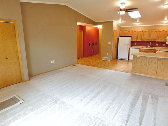 One level townhouse with full basement, 3 main floor bedrooms, 2 bathrooms and an attached double garage. Premier location south of Dakota Square Mall. You'll feel right at home when you walk into the large open living, dining room, and kitchen area with vaulted ceilings and skylights that filter natural light into the room. The kitchen is well equipped with nice appliances and lots of cabinets. A main floor laundry is an added convenience. One of the three main floor bedrooms has a sliding glass door to the back yard, which makes it a great option for use as a den or family room. The master bedroom is comfortably sized and features an en suite bathroom. The full unfinished basement offers endless potential for future living area and currently provides a great place for exercise equipment, pool table, ping-pong table, etc. It also provides an abundance of storage. The basement also features an egress window for a future bedroom. The attached double garage is neat, clean, and heated. Virtual Tour available for this listing.