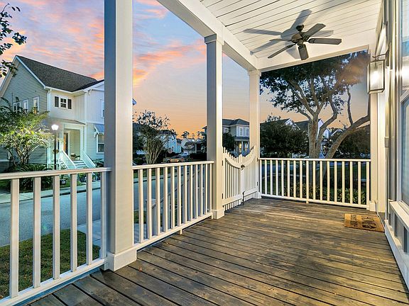 This beautiful home is tucked away on a quiet street in Freemans Point at Seaside Plantation. You'll notice great curb-appeal with attractive landscaping and an irrigation system with a smart controller in the garage. You may appreciate energy savings from the solar panels on the home, which have already been paid off (the energy generated covers the current owner's electric bill). The solar energy system also includes a backup battery, which will power 90% of the outlets and appliances in the home. Double front porches, with ceiling fans, welcome you home. As you enter, you're greeted by handsome wood floors throughout, smooth tall ceilings, plantation shutters, and a spacious open floor plan with abundant natural light.You'll also find a security system, a 5.1 surround sound system with a second zone with 2 outdoor speakers on the back porch, and smart home features, including smart locks, smart lights, and smart switches. The home is also pre-wired for Xfinity and AT&T with hookups in all bedrooms. You'll appreciate energy savings and endless hot water from the tankless water heater. Enjoy cool evenings in front of the cozy gas fireplace in the great room. The open kitchen boasts recessed and pendant lighting, stainless steel appliances (including a gas range), beautiful quartz countertops, a stylish subway tile backsplash, a farmhouse sink, a large island with a breakfast bar, ample cabinet and counter space, and a pantry for additional storage space. Behind the kitchen, you'll find a flex room, which could be used as a 4th bedroom, a formal dining room, or a home office/study. The spacious master bedroom features private access to the upstairs front porch, a walk-in closet, and a private en suite bathroom with a dual vanity, a separate water closet, a luxurious free-standing soaking tub, and a separate shower. The rest of the bedrooms are spacious in size and share a Jack-and-Jill bathroom. The screened-in back porch, with ceiling fan and built-in speakers, and the large paver patio, and fenced-in backyard will be perfect for grilling out and entertaining. The detached two-car garage gives you plenty of space for parking and storage. You'll appreciate all of the neighborhood amenities, including a community pool, a covered pavilion, a playground, a dog park, walking trails, two community docks, and a community boat ramp. Conveniently located near shopping, dining, Downtown Charleston, and Folly Beach. Come see your new home, today!