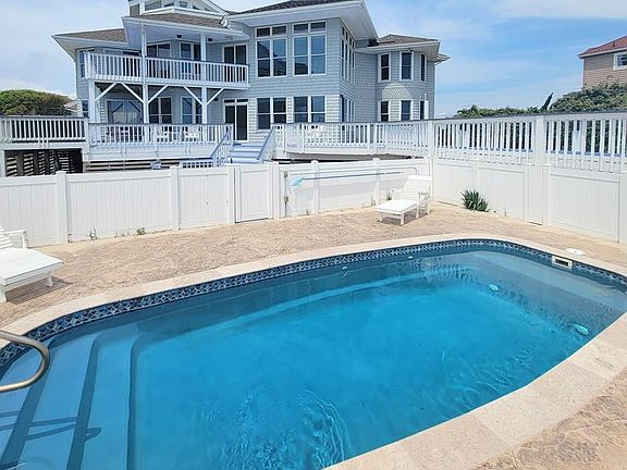 Unique Oceanfront Estate with Magnificent Ocean Views. This Craftsman-Style Cottage is situated on a Large 28,000 Sq Ft Lot and in an X Flood Zone! Custom architectural woodwork, including antique heart Pine wood floors, is found throughout & Designed to capture views of the Atlantic Ocean. Step into the impressive 3-story Foyer with custom Juniper wood ceilings, plantation shutters, & showcasing wide custom wood stairs with Fir handrails, that lead to an open floor plan. The great room offers 2 stories of soaring windows with ocean views, Cypress wood cathedral ceilings and an impressive stone, gas fireplace, with an oceanside catwalk -- a rare feature -- that leads to an oceanside balcony. Gaze at the ocean from the gourmet kitchen with large kitchen island and Oak floors, gas countertop range, plantation shutters, and beautiful Spanish tile. You will also find custom cabinetry and bar for entertaining guests. Enter the massive Master Suite through arched doorways, offering an ocean-view sitting area. The impressive Master Bathroom features a clawfoot tub, double vanity, & a spacious tiled, glass shower with a teak bench, cedar lined closets, and Bidet. All of the other bedrooms and bathrooms are spacious, with large closets and room for expansion. Relax & enjoy the Ocean breeze from your Private Pool (Installed 2018), Hot Tub (2018), Covered Decks, and Personal Beach Boardwalk (recently remodeled). Notable features include a Ship's Watch on the 4th floor, with private balcony and rooftop deck, offering spectacular ocean views, plantation shutters that are found throughout the home, custom woodwork, arched doors, and an oversized garage/workshop, that could be made into a Game Room. Located in the desirable Ocean Hill subdivision. This home is lightly used & it shows. Did I mention, it is SOLD FURNISHED!!!