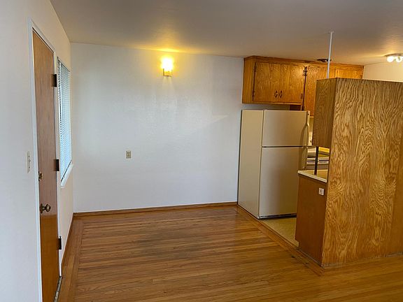 Downstairs north end unit in 8-plex available now. Original hardwood floors throughout apartment. Open concept entry/living area with large north facing window and natural gas wall heater adjoins dining area and electric kitchen with new appliances. Private door to bedroom with west facing window, walk in closet and tile bathroom with shower over deep tub. New dual pane windows on order to be installed in near future. Coin operated washer and dryer are downstairs. One off street parking space might be available. Exterior storage downstairs. $2000 per month. $4000 security deposit. Landlord pays water. Tenant pays electricity, gas and garbage. No smoking.