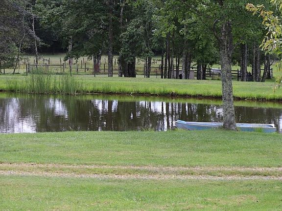 Walk-out basementFarm buildingGranite countertopsSpring-fed stocked pondCovered front porchMature oaksSide porch