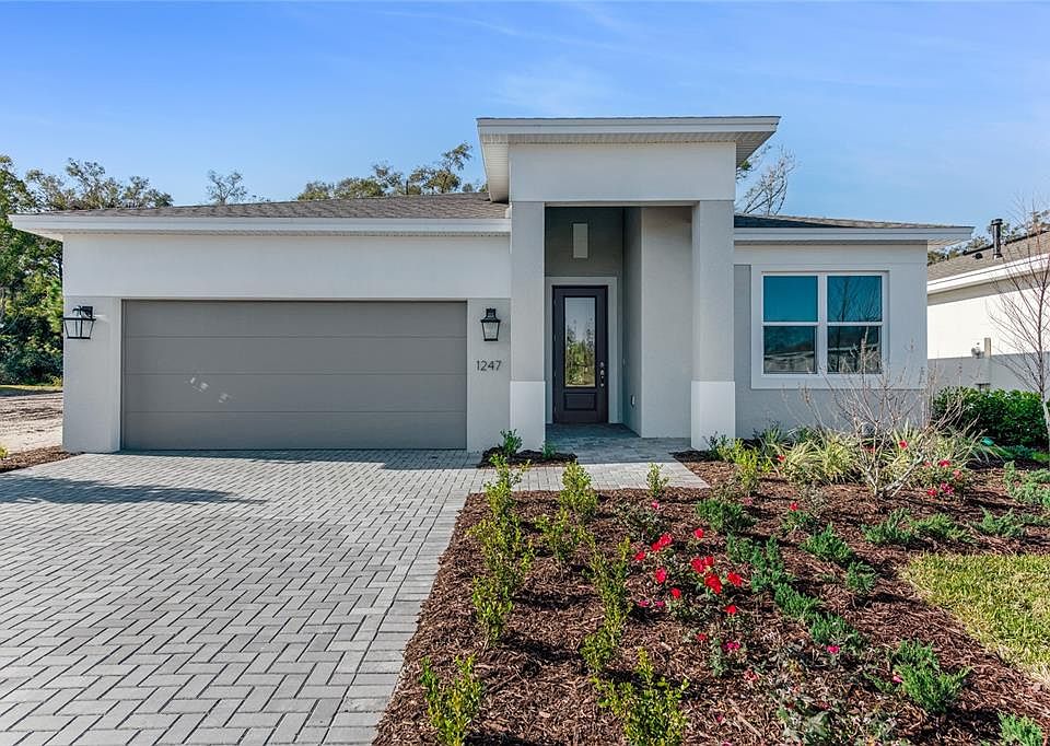 ***NEW CONSTRUCTION***Welcome to the Morgan floorplan, a thoughtfully designed 3-bedroom, 3-bath home that offers both style and functionality. This home includes a versatile flex room, perfect for hobbies, guests, or a quiet retreat. The expansive Great Room, with its elegant tray ceilings, creates an inviting space that flows seamlessly into the heart of the home, the gourmet kitchen. Here, you'll find luxury veined quartz countertops, a gas cooktop, wall oven, and stainless-steel appliances, along with a chimney-style exhaust hood and artisan backsplash tile in a picket design. Additional storage is provided with a pot and pan cabinet and a 24” deep cabinet above the refrigerator with a side panel. The Owner’s Suite offers privacy and comfort, featuring an oversized walk-in closet and a spacious bath with split vanities and a frameless shower enclosure. The bath also boasts tile-to-the-ceiling in the shower for a sleek, modern touch. A second frameless shower enclosure is featured in Bath 3 for added luxury. Enjoy peaceful mornings or evenings on the rear lanai, which is surrounded by natural beauty, providing the perfect setting for relaxation. With a designer glass front door creating a welcoming entry, this home seamlessly combines elegant design and practical living. The Morgan offers a smart, low-maintenance layout that is perfectly suited for a relaxed, refined lifestyle, just steps from community amenities and designed for effortless living.
