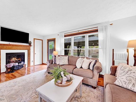 Charming Colonial w/ a Country Feel & Modern Updates! This beautiful 3 bed/2.5 bath home is nestled away in a quiet dead-end development. Greeted by a covered front porch w/ pretty views-this spot is a perfect place to enjoy your morning coffee or read a book. Inside you'll find the main floor flows w/ inviting transitional design. Warm solid wood flooring, trim & cabinetry are accented by modern lighting & fixtures throughout. Adjacent to the kitchen the dining room is spacious & is perfect for both everyday meals or special occasions. The kitchen shines-highlighted by stainless steel appliances, a pantry & a breakfast bar w/ seating for 4! There is ample space for both cooks & all your entertaining as well! The open concept kitchen spills into a cozy family room-accented by a gorgeous fireplace & loads of natural light from the windows & door to the back yard. Step outside to find your PRIVATE back yard with all new maintenance free fencing and views up into a wooded area where the fire pit awaits you. The back yard combines function, style & serenity. The renovated deck has an inviting new covered gazebo-complete w/ lights & fan! Spend both your days & nights relaxing in this peaceful & quiet back yard. Back inside on the 2nd level you'll find a generous Owner's Suite - complete w/ vaulted ceilings, a walk in closet w/ custom storage & private ensuite bath. This floor is rounded out by 2 additional bedrooms AND another full bath, as well as ample storage. There's still more! The lower level of the home boasts another 800 sq ft of living space. The spacious flex area being used as a Rec Room is well suited for all your entertaining needs-or just hanging out! This flex space could easily be a home gym, game room or home theatre. ALL APPLIANCES STAY! New appliances-carpet-paint-fans-fixtures-deck-gazebo: 2023/ New fencing 2024/Minutes to downtown Akron/Arlington Ridge Marketplace/Firestone Golf Course & Mertropark/Springfield Lake/the new Starbucks and more!