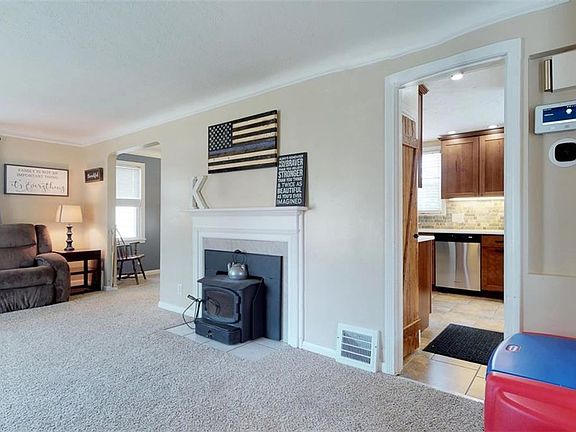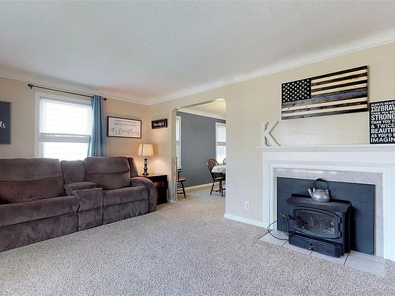 Move right in to this beautifully updated colonial in Lyndhurst! This property features an inviting floor plan, a renovated kitchen, and a fenced-in backyard with plenty of green space for outdoor games, gardens, and gatherings! The living room features a functional wood-burning stove, and a bay window with a window seat. The kitchen showcases gleaming white quartz counters, stone backsplash, all newer appliances, and a breakfast bar that overlooks the dining room. Upstairs, there are three bedrooms with hardwood floors and an updated full bathroom. The full lower level is partially finished with a recreation room with a wet bar, a full bathroom, and a laundry area with a newer washer and dryer. Outside, you are sure to enjoy summer cookouts on the back porch, and the yard is fully fenced-in, great for children or pets! Other recent improvements include a newer furnace and water heater, newer windows, newer gutters and downspouts, and a Vivint Security System. Located in Lyndhurst just off of Mayfield Road, this home is convenient to Acacia Reservation, Mayfield Sand Ridge Club, and area retail destinations including Legacy Village and Beachwood Place. Do not miss this opportunity to own a move-in ready home, because it will not last long!