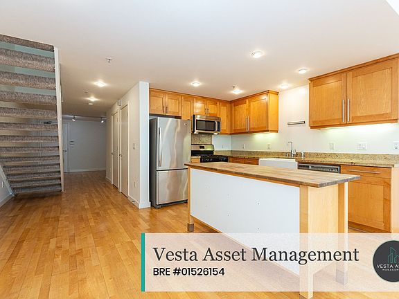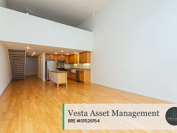 Welcome to H2O Lofts at 1247 Harrison Street, Unit #2 a sleek and spacious loft-style residence in the heart of San Francisco's SoMa district. This second-floor unit offers a versatile open layout with soaring ceilings and oversized windows that flood the space with soft natural light, while avoiding the direct glare of the sun. With ample room for a comfortable living area, dining space, two full bedrooms, and a home office, the floor plan is both functional and flexible. The kitchen is designed for those who love to cook, featuring a gas range and oven, refrigerator, dishwasher, and a generous amount of counter space, including a large kitchen island ideal for meal prep and entertaining. The upstairs lofted bedroom feels private and serene, complete with a skylight and access to a small outdoor patio. Additional highlights include an in-unit washer and dryer, storage space, and two-car garage parking a rare find in the city. H2O Lofts is a boutique 28-unit building offering secure access, an elevator, a mailroom, and a gated garage. This is a non-smoking unit, and tenants are responsible for PG&E utilities. Set in a vibrant and central location close to public transit, dining, shopping, and major tech employers, Unit #2 at H2O Lofts is an exceptional opportunity to live in one of San Francisco's most dynamic neighborhoods.