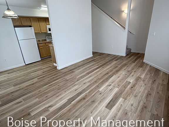 Modern, beautiful two bedroom two bathroom townhome, with brand new paint, carpet, and vinyl. This home features large vaulted ceilings with several windows creating gracious natural light. This floorplan offers one well-sized bedroom downstairs, as well as a bathroom, and stackable washer and dryer. Upstairs features the large primary suite with a walk in closet and en-suite bathroom. Outside has an attached patio, and personal storage closet! Owner pays water, sewer, tash. Tenant responsible for power and gas. Washer and dryer in unit. No smoking. One covered assigned parking space. Off street parking available. 12mo. lease. Professionally managed by Boise Property Managment